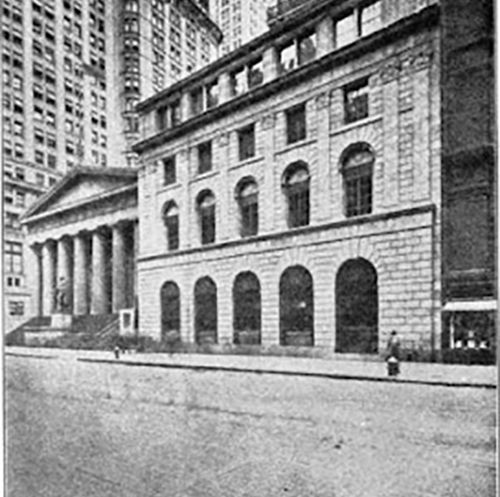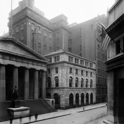 The building was repaired after an explosion – set off using a horse drawn carriage – rocked Wall Street on Sept. 16, 1920.